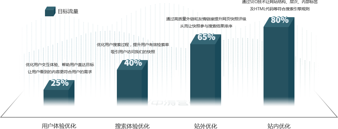 通过搜索引擎自然排序规则,对网站内部及外部的调整优化,改进网页快照在搜索引擎中的关键词自然排序从而获得更多目标流量,达成客户转化及品牌建设的目标。